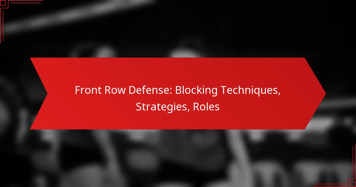 Front row defense is a critical aspect of competitive play, focusing on blocking techniques that prevent opponents from scoring. By mastering these techniques and understanding individual roles within the defensive strategy, teams can effectively counter attacks and maintain control of the game. Coordinated efforts in blocking not only disrupt offensive plays but also enhance the overall defensive capabilities of the team.