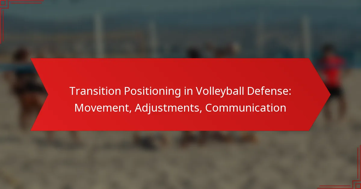 Transition positioning in volleyball defense is essential for players to swiftly adapt from offensive plays to defensive setups. This involves strategic movement, quick adjustments, and clear communication among teammates to maintain an organized defense against the opposing team’s attacks. By mastering these elements, players can enhance their defensive effectiveness and respond adeptly to different offensive strategies.